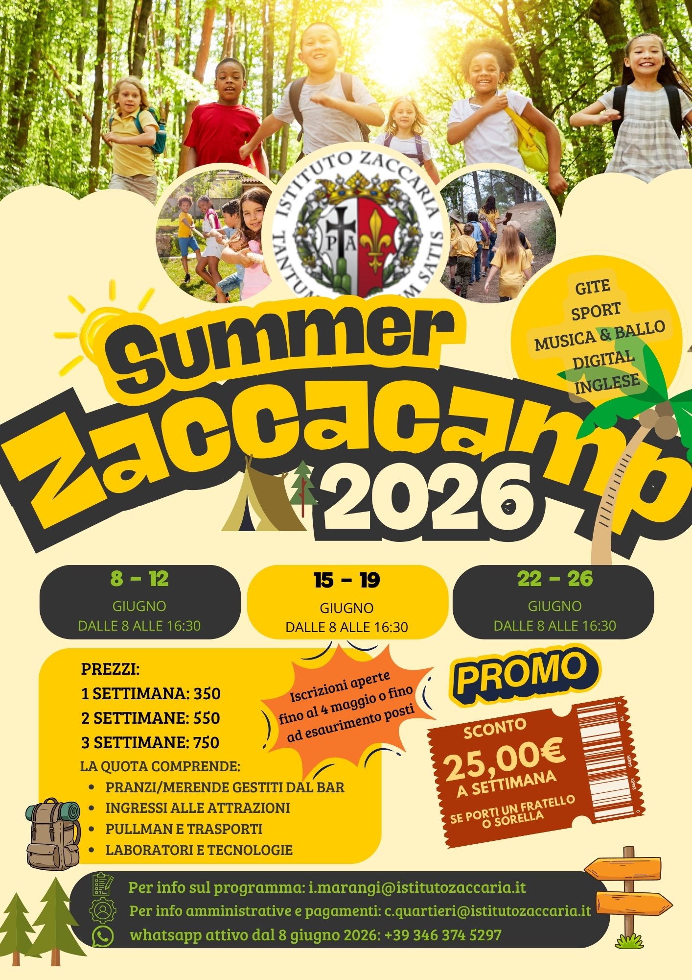 Sono aperte le iscrizioni allo Zaccacamp 2026, un’esperienza estiva pensata per bambini e ragazzi dai 6 ai 12 anni, all’insegna del divertimento, della creatività e della socializzazione.